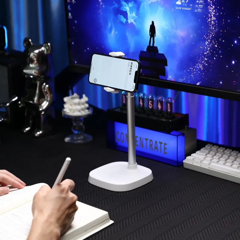 | Product name | Desktop Mobile Phone Holder | Material | Aluminum alloy + Silicone Pad+ Plastic+Carbon Steel base |